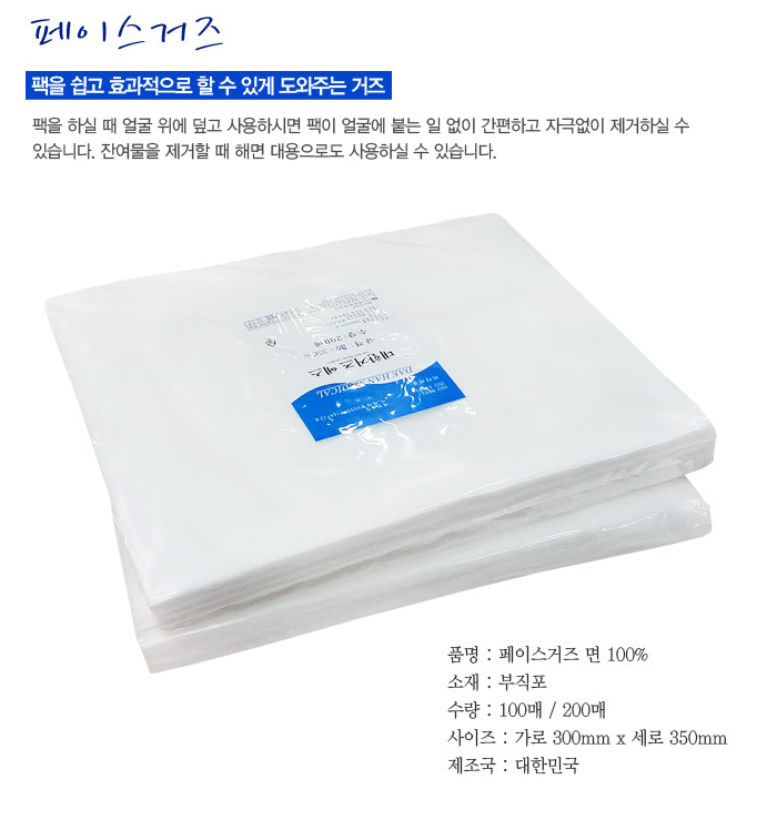 팩 거즈 (페이스 거즈/국내산/30cm*35cm)/100매